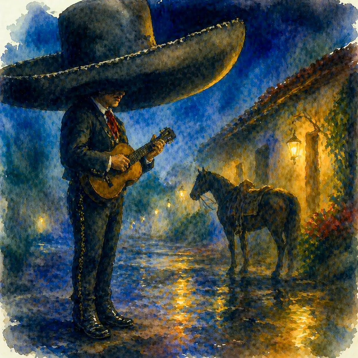 Busca muchachas de trenza larga y ojos inquietos. No cualquiera: busca a la que está soñando despierta, a la que está cansada de lo que tiene en casa, a la que ya no le alcanza lo cotidiano. El Sombrerón huele ese hambre. No el hambre de estómago — esa no le interesa —, sino el hambre de ser vista. Y ahí aparece, guitarra en mano, a cantarle a la ventana como si fuera la única mujer del mundo.