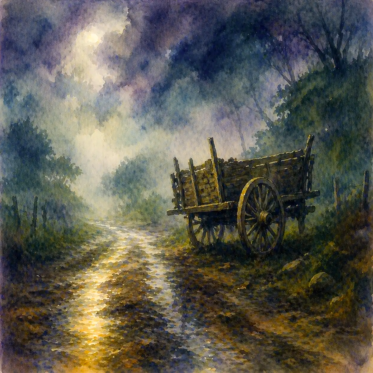 Primero se oye: madera, eje y lastre. Sonido viejo, de pueblo tico. Por eso asusta tanto escucharlo de medianoche, cuando nadie anda trabajando y el camino debería estar mudo.